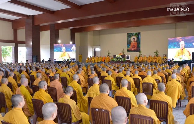Tại đại giảng đường thuộc chánh điện mới trong khuôn viên Học viện, Đức Pháp chủ GHPGVN đã có buổi giảng đầu tiên cho khóa huân tu, với sự tham dự của chư tôn đức Hội đồng Điều hành, lãnh đạo các khoa, các khối văn phòng, Ban Quản viện và hơn 1.000 Tăng Ni sinh viên nội trú các khóa và Phật tử ngoại hộ.