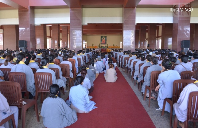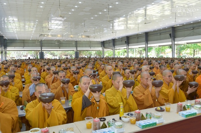 Đức Pháp chủ đã quang lâm quá đường cùng đại chúng tại nơi chánh điện tạm. Phật tử Đạo tràng Pháp Hoa đã đến ngoại hộ, cúng dường chư vị giáo phẩm, Tăng Ni sinh viên hiện diện tu học nội trú.