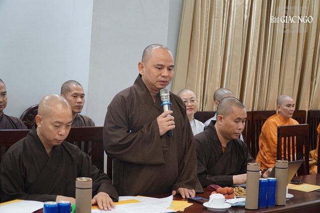 Tại phiên họp, Ban Thư ký đã báo cáo số lượng chư tôn đức tham dự, thời khóa của tuần huân tu; lãnh đạo phòng Sau Đại học trình bày về việc bảo vệ luận văn thạc sĩ và đề cương luận văn thạc sĩ...