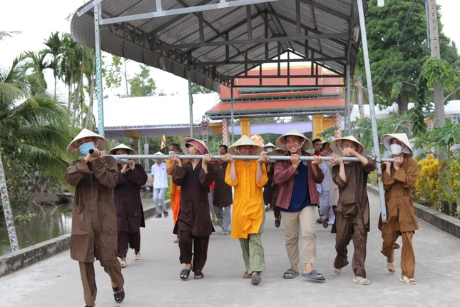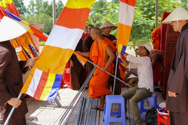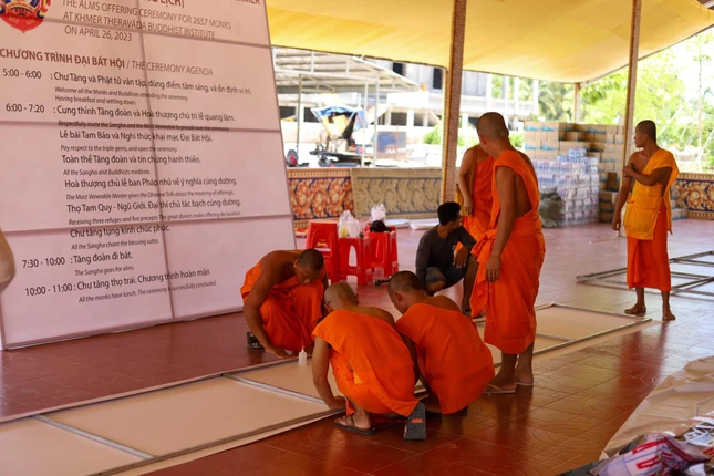 Một số hình ảnh công tác chuẩn bị của chư Tăng các tự viện và tình nguyện viên các tỉnh thành tham gia hỗ trợ cho buổi lễ sáng 24-4:
