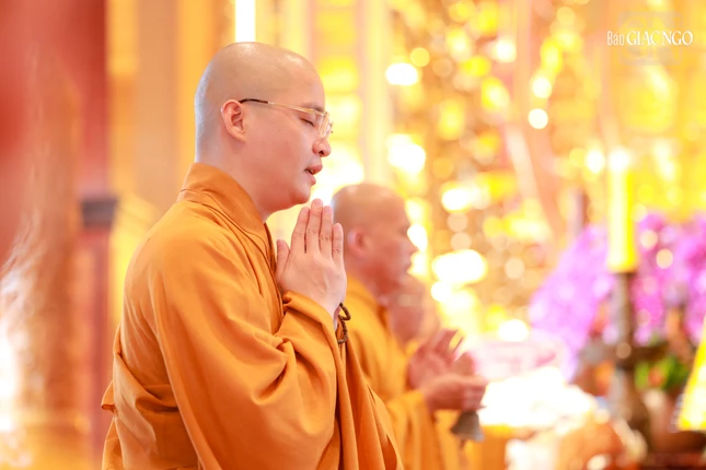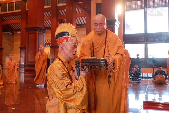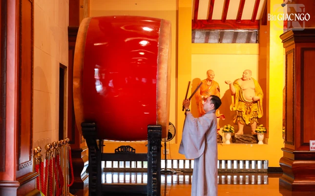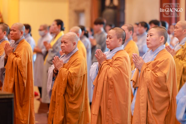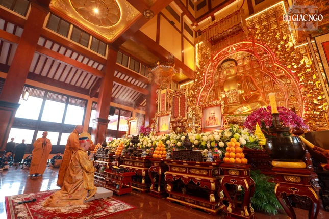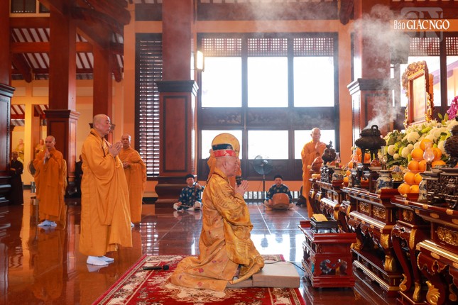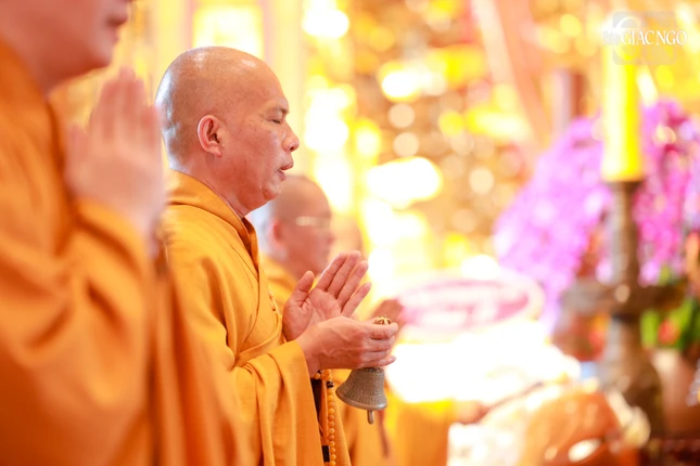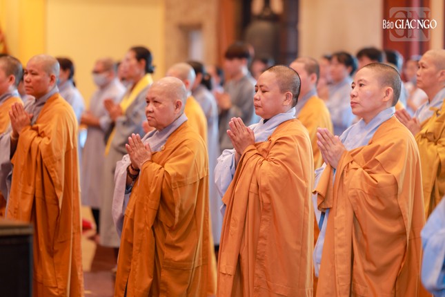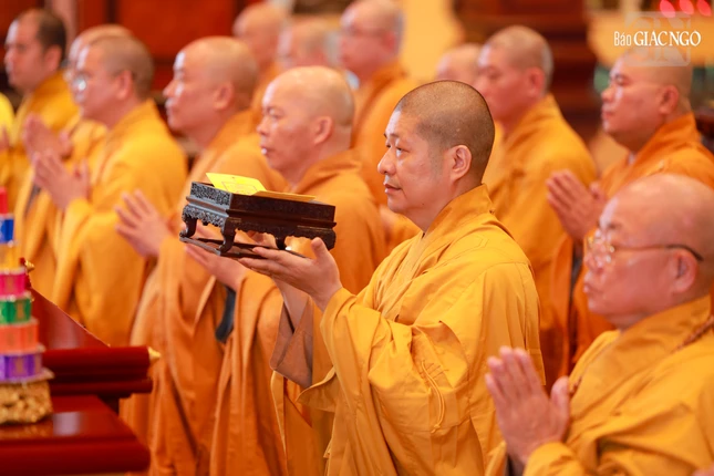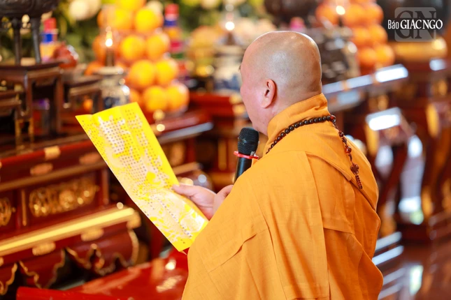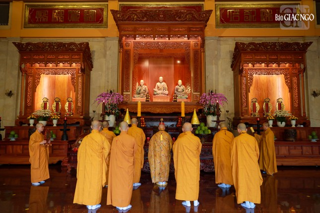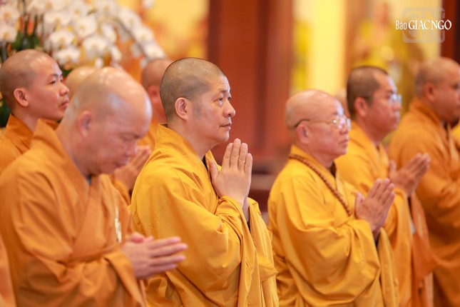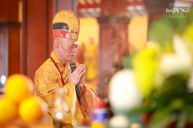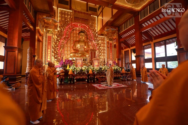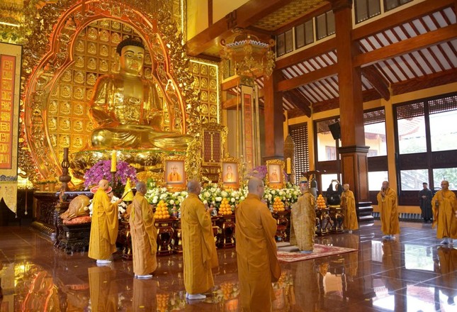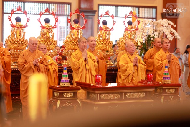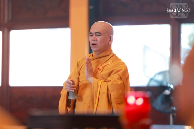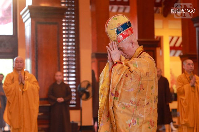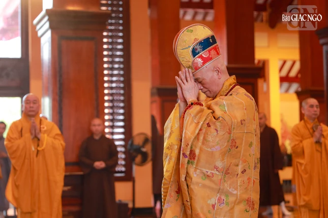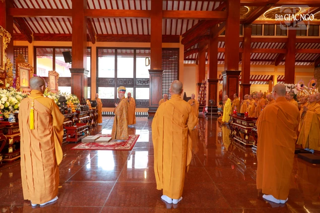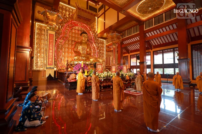 Tại chánh điện Việt Nam Quốc Tự, Hòa thượng Thích Giác Đạo, Ủy viên Hội đồng Trị sự, Phó Trưởng ban Thường trực Ban Nghi lễ T.Ư đương vi sám chủ, cùng chư tôn đức Ban Kinh sư đến từ Cố đô Huế đã cử hành nghi thức Phổ Phật cúng ngọ.