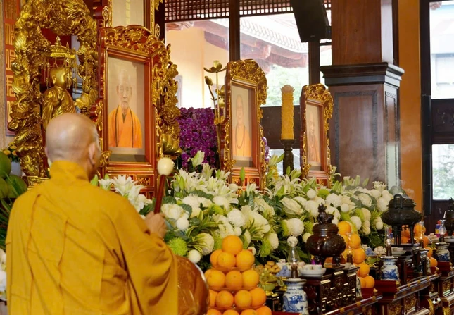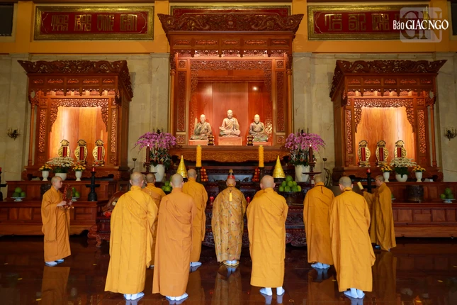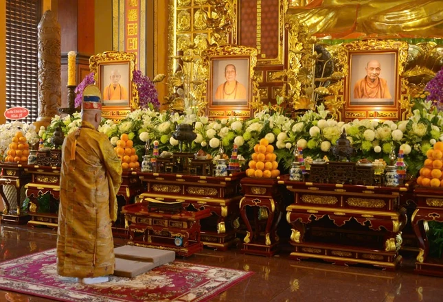 GNO - Sáng 10-12 (10-11-Giáp Thìn), tại Việt Nam Quốc Tự (Q.10, TP.HCM), tiếp sau khóa lễ theo truyền thống miền Bắc, chư tôn đức Phật giáo Huế đã cử hành nghi thức Phổ Phật cúng ngọ trong Lễ tưởng niệm chư vị Pháp chủ, chư vị Trưởng lão thành viên Hội đồng Chứng minh đã viên tịch