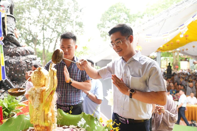 Tại buổi lễ, chư tôn đức cùng toàn thể đại chúng đã làm lễ niêm hương bạch Phật, tụng kinh Khánh đản và thực hiện nghi thức Tắm Phật truyền thống trong niềm thành kính của tất cả những người con Phật.