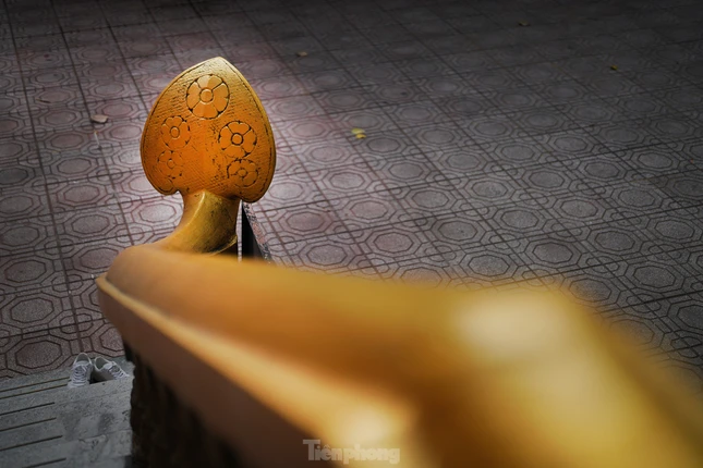 Tượng Phật được bảo vệ trong lồng kính ngồi dưới tượng rắn Naga. Trong các kiến trúc cổ Khmer luôn có hình tượng cầu vồng hình rắn Naga, tượng trưng cho sự nối liền giữa cõi trần gian và Niết-bàn