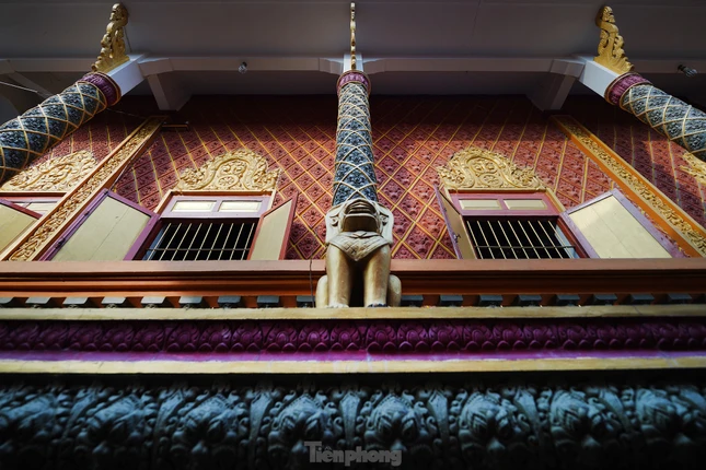 Cầu thang dẫn lên chánh điện được thiết kế gắn với hình ảnh rắn Naga. Rắn Naga nhiều đầu tượng trưng cho chiếc cầu nối thế giới con người đến thế giới tâm linh. Phổ biến nhất trong các chùa Khmer ở Nam bộ là rắn Naga 5 đầu