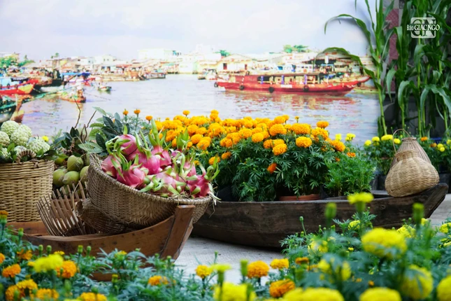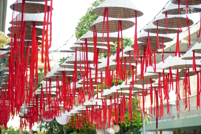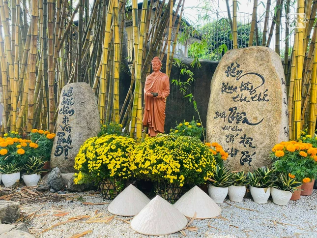 Theo đó, không gian Tết Việt ba miền tại chùa Vạn Đức được thiết trí với đường hoa, phố lồng đèn, chợ nổi miền Tây, làng hoa Sa Đéc, làng hương Huế, ký ức Hội An, thư pháp, tranh Đông hồ, lời ước nguyện, lộc xuân, thỉnh kinh sách... đã tô điểm sắc xuân rạng ngời nơi chốn thiền môn.