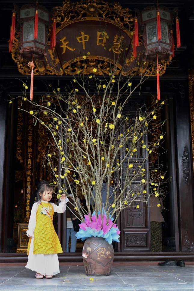 Nhiều bạn trẻ thì lựa chọn lên chùa để có thể thoải mái tạo dáng chụp ảnh bên những gốc mai nở rộ, ngôi nhà tranh được trang trí đậm sắc Tết hay đơn giản là dạo chơi cùng bạn bè và nhận những phong bao lì xì chứa những lời hay ý đẹp.
