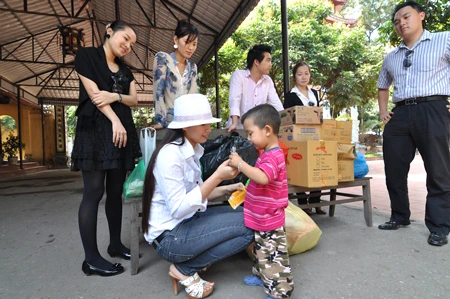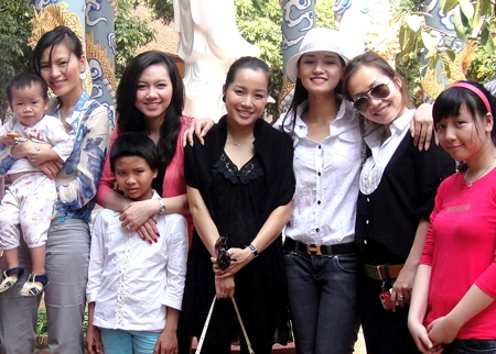 Đồng cảm với những số phận bé nhỏ kém may mắn ở chùa Bồ Đề, “Nguyên phi” Lã Thanh Huyền cùng “Vàng Anh” Minh Hương, diễn viên Minh Hà và người đẹp Ngọc Hà đã đến thăm và tặng quà Tết cho các bé tại chùa vào ngày 9/2.