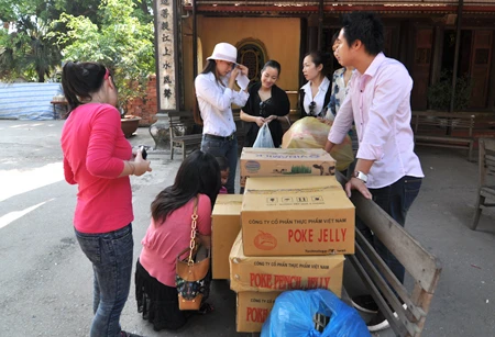 Ngoài Minh Hà, Minh Hương, Lã Thanh Huyền và Ngọc Hà, chuyến đi làm từ thiện nhân dịp Tết Nguyên Đán còn có sự tham gia nhiệt tình của một số bạn bè thân thiết các người đẹp. Bốn người đẹp vần H đã mang tặng bánh chưng, giò, mứt, sữa, tiền và quần áo… cho các bé đang được nuôi dưỡng tại chùa Bồ Đề, Gia Lâm.