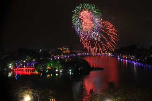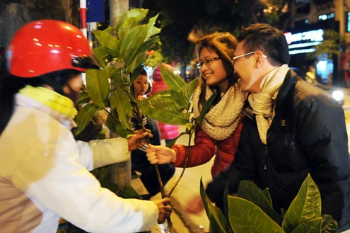 Ngay từ 21h tối, xung quanh khu vực hồ Hoàn Kiếm đã đông nghịt người đổ về chờ đón khoảnh khắc bước sang năm mới Nhâm Thìn.Các đôi bạn trẻ dìu bước nhau cùng chiêm ngưỡng cảnh đẹp của mùa xuân.Cùng chụp ảnh bên cây mai đầy lộc.