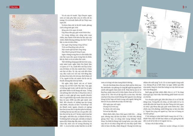 Vui chuyện quên giờ, đến khi chào cô ra về thì đã đứng trưa. Trong khi rời chùa, cả tiên sinh Lê La và mình đều tấm tắc hoan hỷ câu thơ “bóng vờn trên ngọn tử sinh/ gậy khua đầu gậy giật mình thiên thu”, nên chiều nay trên đường, mình bỗng nảy ra hai câu tiếp ý: “Người thơ cộng với người tu/ Xóa tan vô lượng sa mù bão giông”.