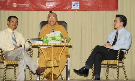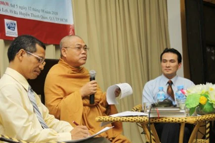 Ba diễn giả trong buổi tọa đàm này là Hòa thượng Thích Giác Toàn - Phó Tổng Biên tập Báo Giác Ngộ, trụ trì tịnh xá Trung Tâm, Phó Chủ tịch & Trưởng ban Kinh tế Tài chánh T.Ư Giáo hội Phật giáo Việt Nam, Giáo phẩm Hệ phái Khất sĩ; Nghệ sĩ, doanh nhân Chi Bảo - Chủ tịch HĐQT Công ty Thương Hiệu, Phó Chủ tịch Thường trực Chi hội Từ thiện Hiểu về trái tim; và ông Nguyễn Mạnh Hùng - Chủ tịch HĐQT kiêm Giám đốc Công ty CP Sách Thái Hà, nguyên Phó Giám đốc Tập đoàn FPT, nhiều năm tu tập theo đạo Phật, ông vừa tham dự một khóa tu dưới sự hướng dẫn của Thiền sư Miến Điện nổi tiếng Ashin Telaniya - viện trưởng Thiền viện She Oo Min Dhammasukha.