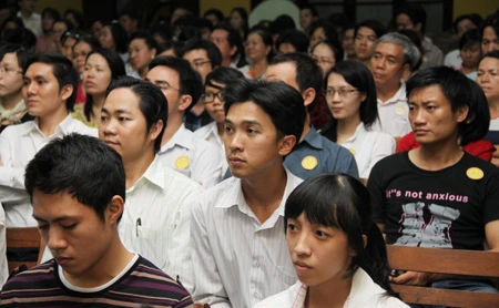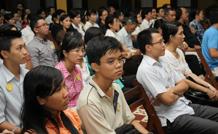 Rất đông các bạn trẻ đang là sinh viên, học sinh đã đến tham dự buổi tọa đoàm "Giao tiếp bằng trái tim" do Thaihabooks tổ chức vào chiều tối ngày 12-8 vừa qua tại chùa Xá Lợi (Q.3, TP.HCM).