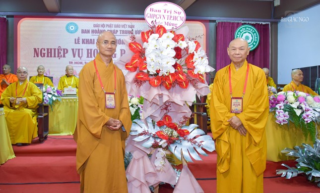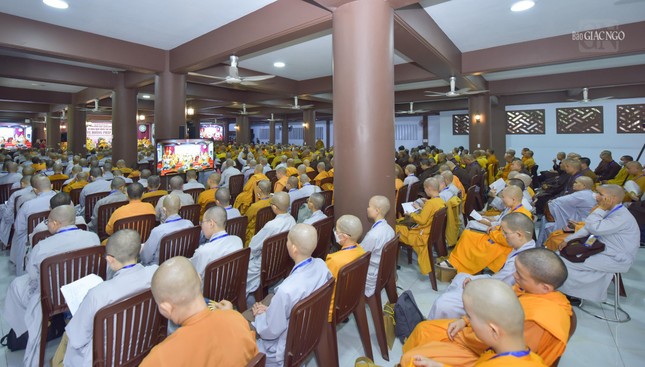 Sau lời cảm tạ của Thượng tọa Thích Thiện Quý, Phó ban Hoằng pháp T.Ư, chư tôn đức bắt đầu khóa tập huấn với thuyết trình của Thượng tọa Thích Đức Thiện về những Phật sự trọng tâm trong thời gian tới của GHPGVN, đặc biệt về kế hoạch tổ chức Đại lễ Vesak Liên Hiệp Quốc năm 2025; Hòa thượng Thích Huệ Thông thuyết trình về Hiến chương tu chỉnh lần thứ VII.