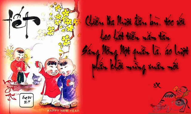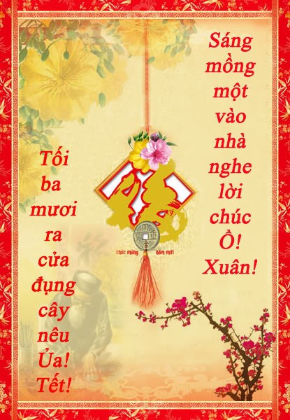 ► “Tối ba mươi, giơ cẳng đụng cây nêu Ủa ! Tết ! Sáng mồng một, vào nhà nghe lời chúc Ồ ! Xuân !”