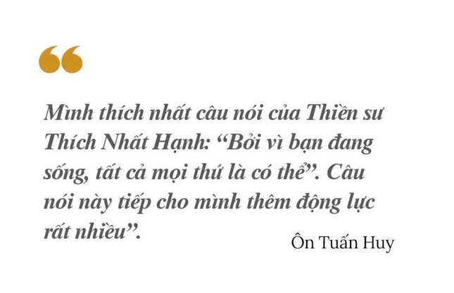 Tuấn Huy bảo: “Niềm vui tiếp đến là mình đã chứng minh cho mọi người thấy được mình đã dám mơ và đã thực hiện được. Mình muốn nhắn gửi đến mọi người, đừng bỏ cuộc, khi mình có ước mơ, có hy vọng, phía trước luôn có con đường và hạnh phúc”.