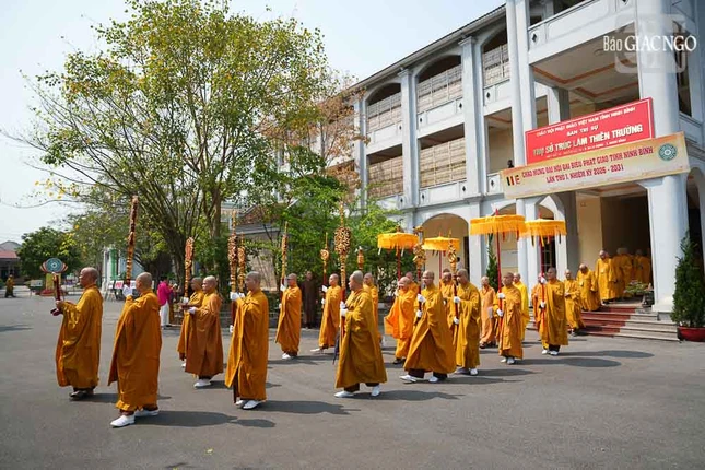 Sau đó, đoàn trở về thiền viện Trúc Lâm Thiên Trường (P.Nam Định) - trụ sở Văn phòng Ban Trị sự tỉnh, thực hiện khóa lễ tại chánh điện trước khi Đại hội Phật giáo tỉnh Ninh Bình lần thứ I, nhiệm kỳ 2026-2031 chính thức khai mạc.