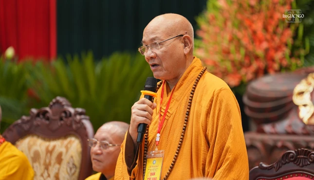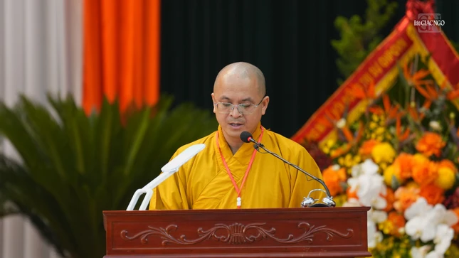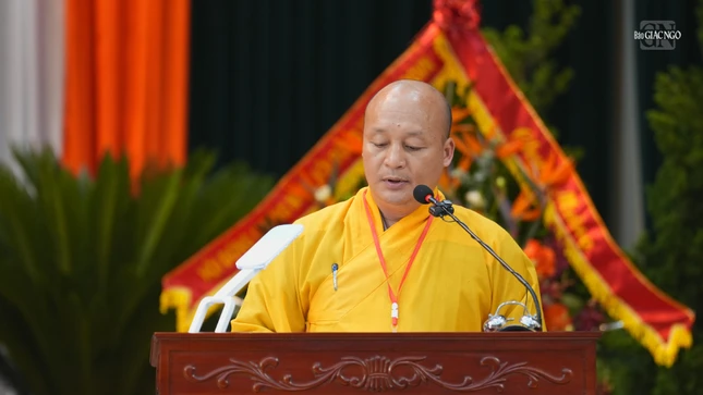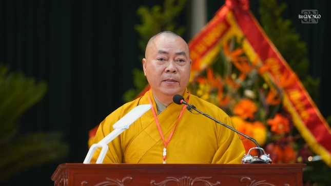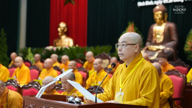 | Thượng tọa Thích Minh Quang trình bày báo cáo tổng kết hoạt động Phật sự nhiệm kỳ 2022-2027 và dự thảo phương hướng hoạt động nhiệm kỳ 2026-2031 |
