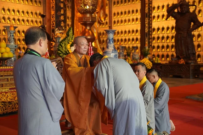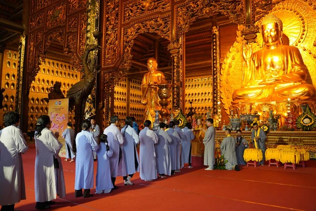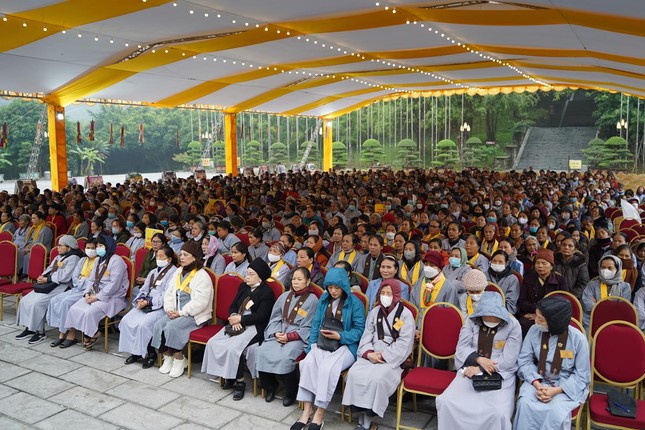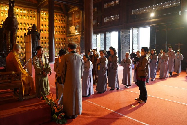Sau chương trình khai mạc, tại hội trường chùa Bái Đính, toàn thể đại chúng đã trang nghiêm bước vào khóa lễ tụng kinh Bổn môn Pháp hoa, cầu nguyện quốc thái dân an, Phật pháp trường tồn. Sau đó, Hòa thượng Thích Bảo Nghiêm đã trao y cho các Phật tử đăng ký được thọ y vào dịp này.