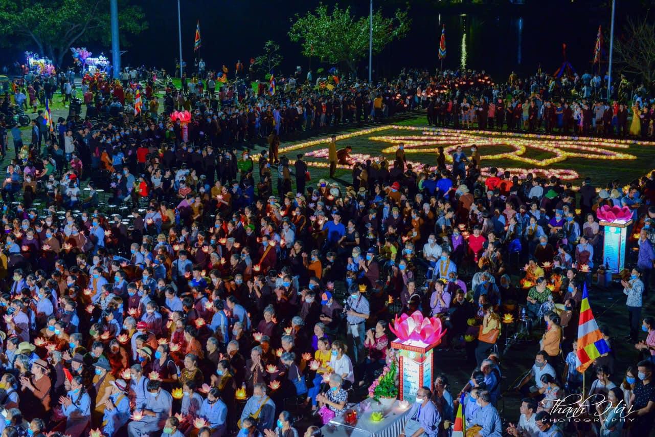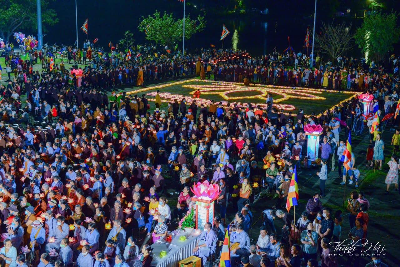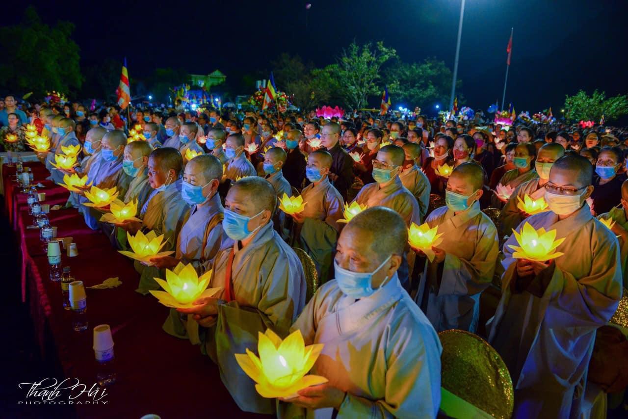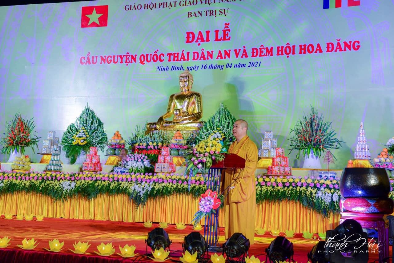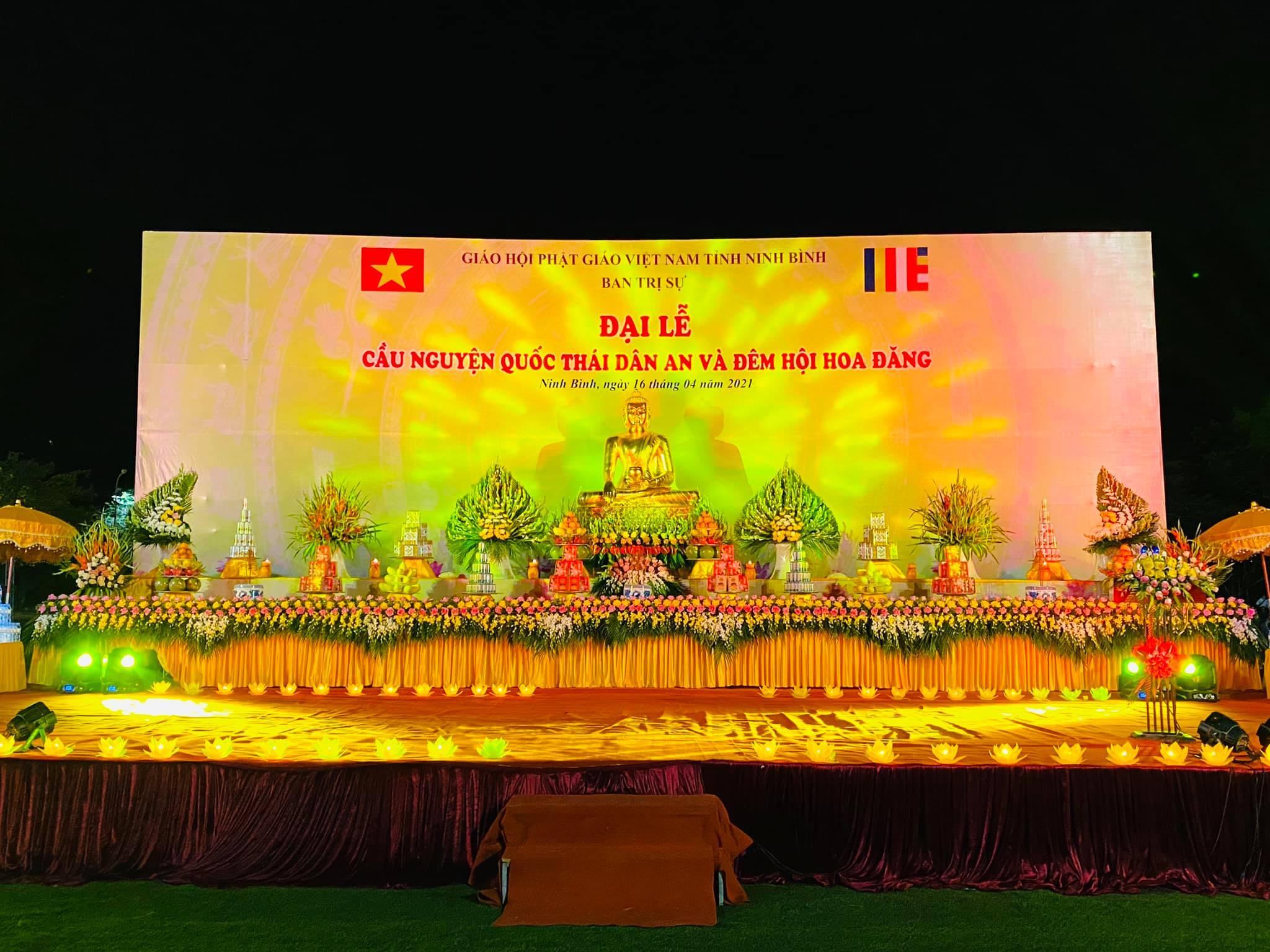 GNO - Tối 16-4 (5-3-Tân Sửu), Ban Trị sự GHPGVN tỉnh Ninh Bình đã tổ chức Đại lễ cầu quốc thái dân an tại khu di tích lịch sử văn hóa cố đô Hoa Lư, hoa đăng trên dòng sông Sào Khê.