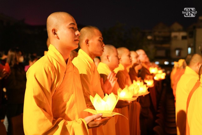Chư tôn đức thực hiện nghi thức tâm linh cầu nguyện |