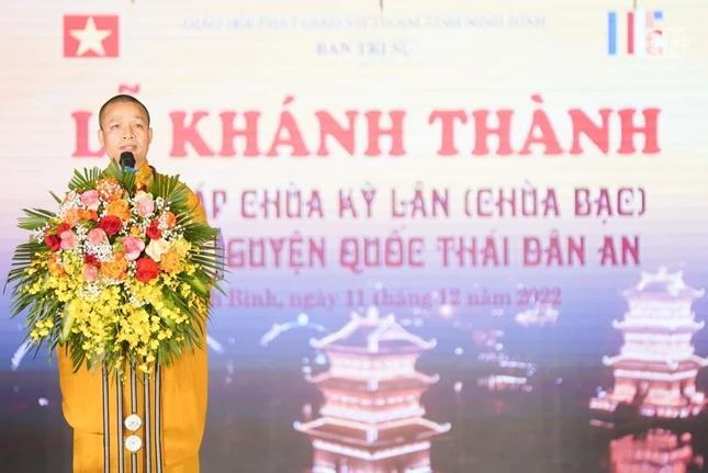 Phát biểu tại buổi lễ, Thượng toạ Thích Minh Quang, Ủy viên Thư ký Hội đồng Trị sự, Trưởng ban Trị sự GHPGVN tỉnh Ninh Bình cho biết: "Từ năm 2017, Doanh nghiệp Xây dựng Xuân Trường và tín đồ Phật tử gần xa đã đóng bè tập phúc tu bổ Kỳ Lân sơn tự, xây dựng các hàng mục như: Bảo tháp Tây Phương, tháp Tứ Ân.. góp phần tôn vinh, bảo tồn, phát huy những giá trị văn hóa, tâm linh do tiền nhân để lại, tạo đà phát triển du lịch tâm linh nơi vùng đất cố đô."