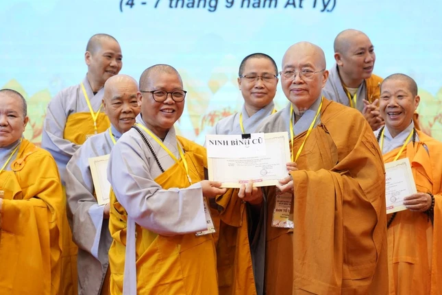 Tại buổi lễ, Ban Tổ chức đã trao Giấy chứng nhận hoàn thành khóa học đến gần 250 vị Ni tham gia khóa học đến từ 15 Phân ban Ni giới thuộc Phật giáo tỉnh, thành phố.