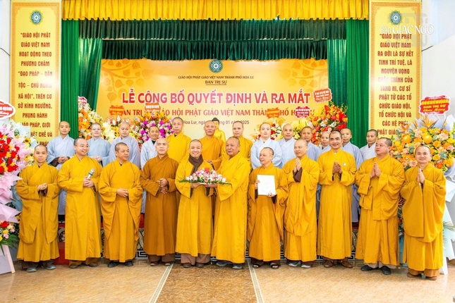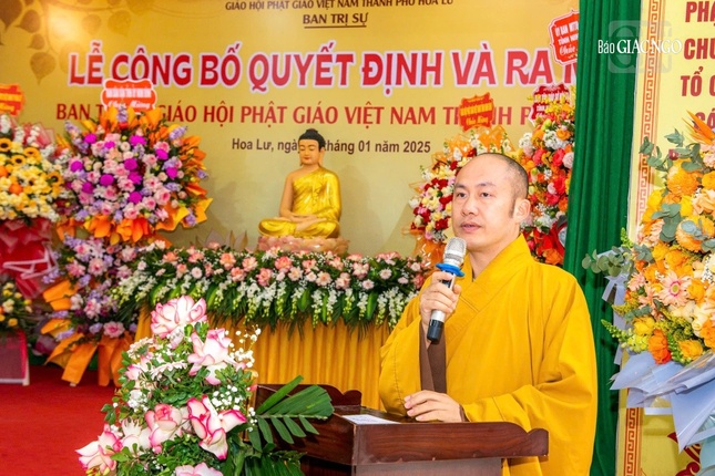 Tại buổi lễ, tân Ban Trị sự GHPGVN TP.Hoa Lư nhiệm kỳ 2021-2026 được công bố theo Quyết định số 15/QĐ-BTS ngày 1-1-2025, gồm 28 thành viên, trong đó Thường trực có 11 vị và 17 Ủy viên Ban Trị sự, do Thượng tọa Thích Thanh Dũng, sinh năm 1967, Phó Trưởng ban Trị sự kiêm Trưởng ban Từ thiện xã hội GHPGVN tỉnh Ninh Bình làm Trưởng ban kiêm Trưởng ban Tăng sự.
