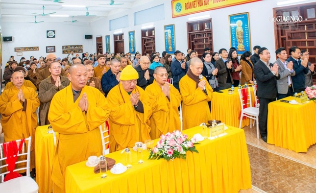 Đến tham dự có Thượng tọa Thích Minh Quang, Ủy viên Thư ký Hội đồng Trị sự, Phó Chánh Văn phòng I T.Ư, Trưởng ban Trị sự GHPGVN tỉnh Ninh Bình, cùng chư Tăng Ni Ban Thường trực Ban Trị sự tỉnh; các ban ngành, cơ quan chức năng tỉnh và thành phố mới Hoa Lư.