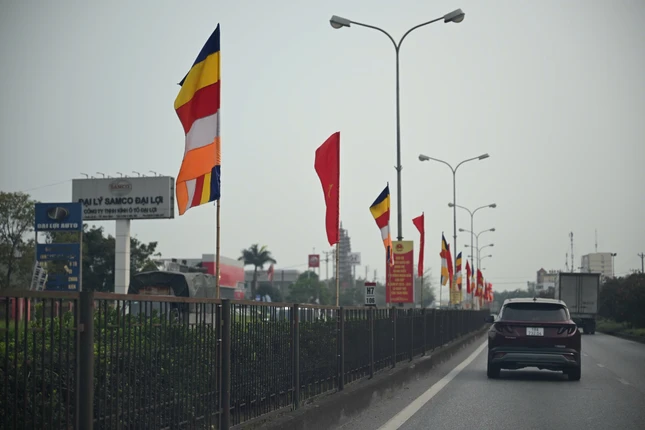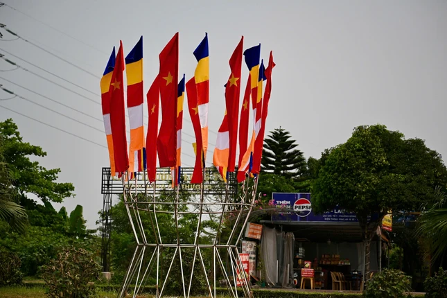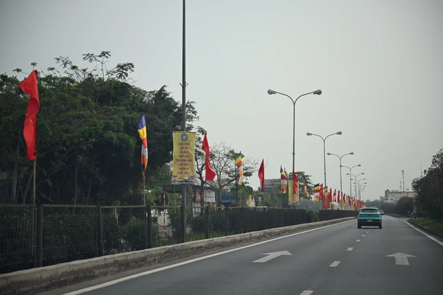 Băng rôn, cờ phướn treo dọc các con đường dẫn vào Trung tâm Phật giáo Trúc Lâm Thiên Trường |