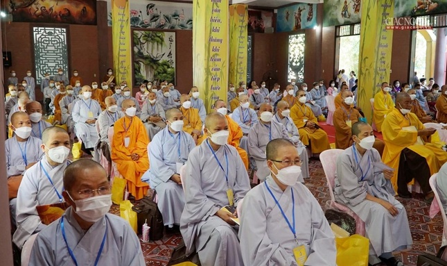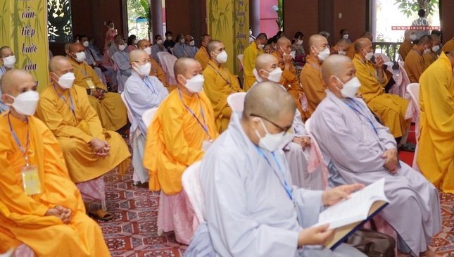 Thay mặt Ban Thư ký, Đại đức Thích Pháp Quang, Phó Thư ký kiêm Chánh Văn phòng Ban Trị sự GHPGVN tỉnh báo cáo tổng kết hoạt động Phật sự khóa VI (2017-2022) của GHPGVN tỉnh. Theo đó, Phật giáo tỉnh đã phát huy những thuận lợi khách quan và nội tại, từng bước khắc phục khó khăn, dưới sự chỉ đạo của Hội đồng trị sự GHPGVN, sự quan tâm của chính quyền sở tại, Ban trị sự GHPGVN tỉnh, Ban Trị sự huyện, thị, thành phố cùng Tăng Ni, Phật tử đã đoàn kết và tích cực hoạt động Phật sự. Các ban chuyên môn của Giáo hội tỉnh cũng như Tăng, Ni, Phật tử nhận thức đúng vai trò, trách nhiệm trong công tác Phật sự, tham gia đầy đủ, nhiệt tình mọi hoạt động và đạt được nhiều thành quả đáng ghi nhận.