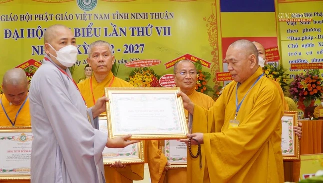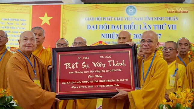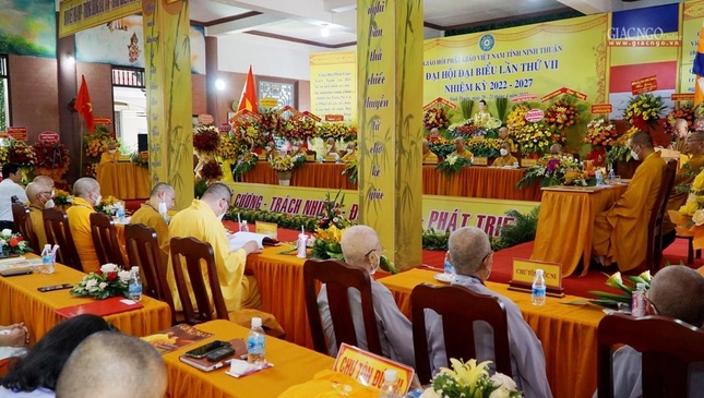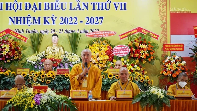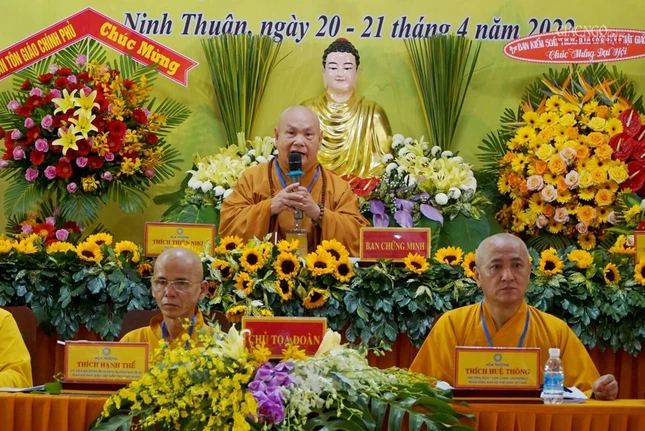 "Đại hội đại biểu Phật giáo tỉnh Ninh Thuận lần thứ VII (2022-2027), hôm nay diễn ra trong không khí trang nghiêm trọng thể và thắm thiết tình người, tình đạo, khẳng định tinh thần đoàn kết, hòa hợp được phát huy vững mạnh theo phương châm: “Đạo pháp - Dân tộc - Chủ nghĩa xã hội”. Lịch sử Phật giáo tỉnh nhà sẽ đánh dấu một bước ngoặc phát triển mới, thông qua chương trình hoạt động công tác Phật sự nhiệm kỳ sắp đến, với tập thể và cá nhân có đủ năng lực và ổn định mang tính kế thừa, sẽ hoàn thành Phật sự mà Đại hội giao phó", Hòa thượng Trưởng ban Tổ chức khẳng định.