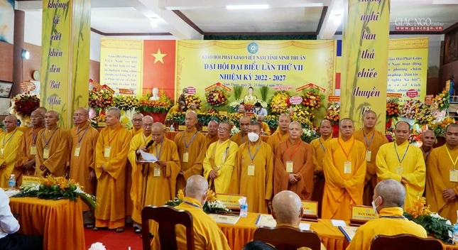 GNO - Sáng nay, 21-4, Đại hội đại biểu Phật giáo tỉnh Ninh Thuận lần thứ VII, nhiệm kỳ 2022-2027 đã trang trọng diễn ra tại chùa Sùng Ân (số 56, đường 21/8, phường Phủ Hà, TP.Phan Rang - Tháp Chàm) với hơn 200 đại biểu chính thức tham dự.