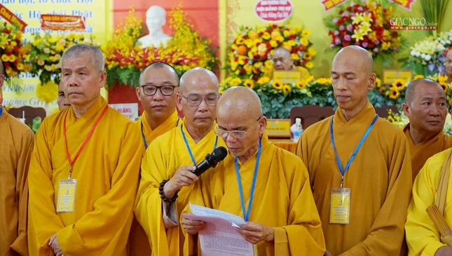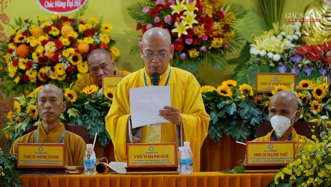 Đại diện Ban Trị sự GHPGVN tỉnh khóa VI (2017-2022), Hòa thượng Thích Hạnh Thể tuyên bố mãn nhiệm.
