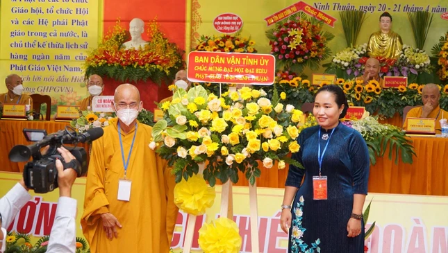 Bà Phạm Thị Bích Hà, Phó Chủ tịch Ủy ban MTTQVN tỉnh Ninh Thuận ghi nhận và đánh giá cao hoạt động tích cực của Giáo hội tỉnh Ninh Thuận, đồng thời tin tưởng trong thời gian tới Tăng Ni, Phật tử Ninh Thuận phát huy thế mạnh phát triển Phật sự làm đẹp quê hương Ninh Thuận. Bà chúc mừng tân Ban Trị sự và bày tỏ tin tưởng Phật giáo tỉnh sẽ phát triển hơn nữa trong thời gian tới.