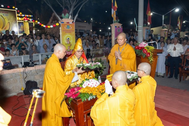 Tại buổi lễ, chư tôn đức cùng quan khách đã trang nghiêm cử hành nghi thức dâng trầm và thắp sáng 7 đóa hoa sen và cử hành nghi thức thả hoa đăng trên Đầm Nại.