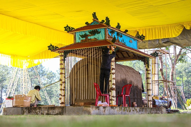 Công việc dựng đài hỏa thiêu cho lễ Trà tỳ Thiền sư Thích Nhất Hạnh đang được hoàn thiện - Ảnh: Lê Hoài Nhân |