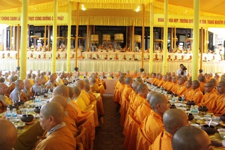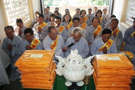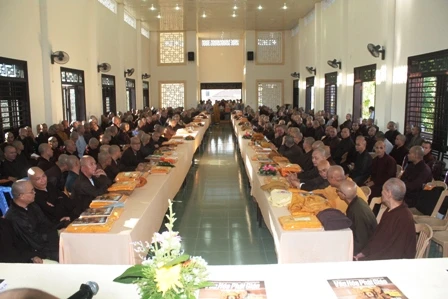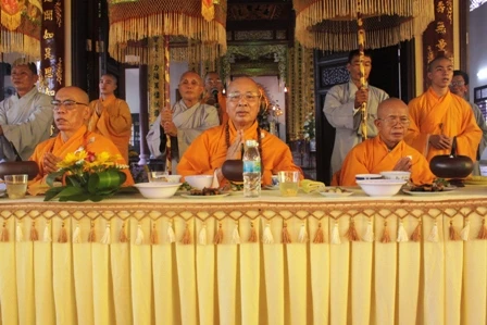 Lễ trai Tăng cúng dường cho khoảng 800 Tăng, Ni tham dự diễn ra rất trang nghiêm và sâu lắng. Hòa thượng Thích Đức Phương ban đạo từ, khuyên nhủ các đạo hữu Phật tử và quần chúng nhân dân cần ý thức hơn nữa truyền thống hiếu đạo của Phật giáo và của cha ông mà thương yêu và có trách nhiệm với ông bà, cha me, con cái, anh em, bạn bè…bởi chỉ có tình thương và trách nhiệm với nhau mới xây dựng được một xã hội đầy tính nhân bản và hướng đến một tương lai an lạc và hạnh phúc bền vững nhất.