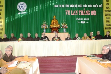 Tiếp theo đó là một cuộc họp ngắn nhằm đánh giá quá trình an cư của chư Tăng, Ni và cung cử 3 vị Ngũ đức sư (Tự Tứ nhơn) cũng đã được diễn ra tại Giảng đường chùa Từ Đàm. HT. Thích Chơn Hương, Trưởng Ban Tăng sự đã báo cáo sơ lược kết quả 3 tháng an cư kết hạ của chư Tăng tại trú xứ Thừa Thiên Huế. Theo đó, toàn tỉnh Thừa Thiên Huế có 348 vị Tỷ kheo, và 435 vị, đồng thời Hòa thượng cũng đã nói lên ý nghĩa của lễ Tự Tứ trong truyền thống Phật giáo.