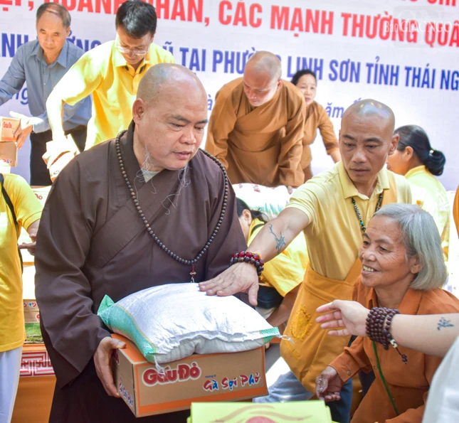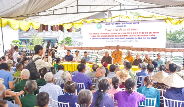 Được biết, hôm nay đoàn đã thăm và trao tặng 1.000 phần quà đến bà con tỉnh Thái Nguyên, tại các chùa: Phù Liễn (phường Phan Đình Phùng), Kim Sơn Cam Giá (phường Gia Sàng), Kim Long (phường Quan Triều) và chùa Linh Sơn (phường Linh Sơn).