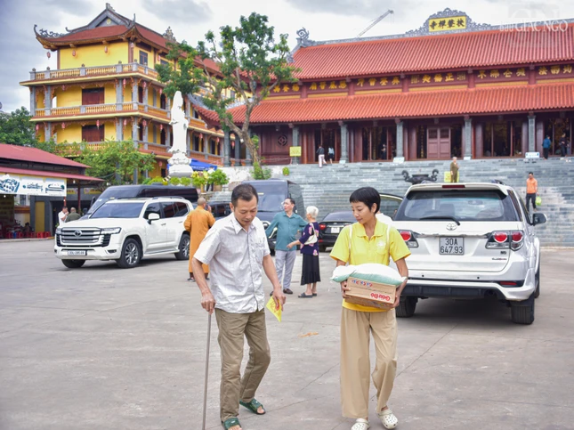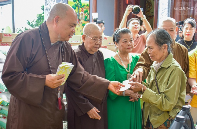 Chia sẻ các phần quà đến người dân tại chùa Linh Sơn |