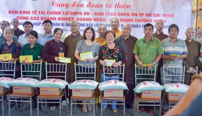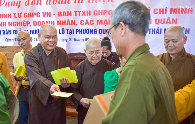 GNO - Theo đó, hôm nay, 21-10, Thượng tọa Thích Thanh Phong, Phó Chủ tịch Hội đồng Trị sự, Trưởng ban Kinh tế - Tài chính T.Ư, Trưởng ban Từ thiện xã hội Phật giáo TP.HCM đã dẫn đầu phái đoàn tặng quà đến người dân tại tỉnh Thái Nguyên - nơi chịu ảnh hưởng nặng nề bởi cơn bão số 10 và 11.
