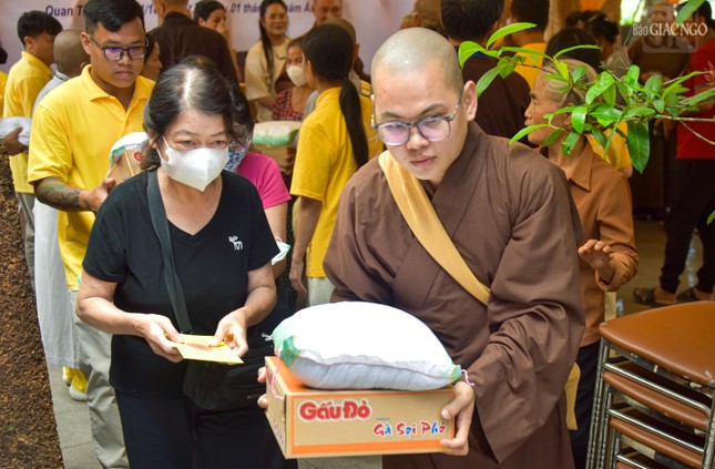 Người dân hoan hỷ chờ nhận quà tại chùa Linh Sơn |