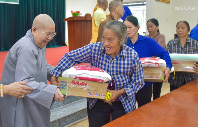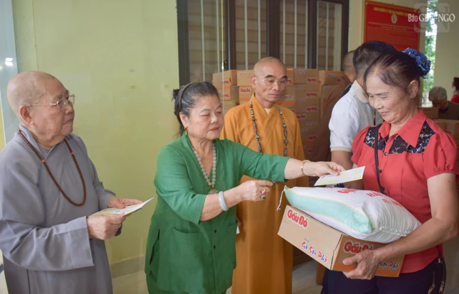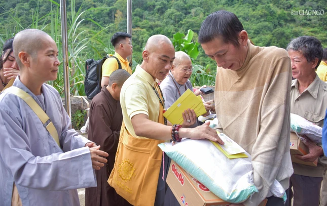 Phát biểu tại buổi trao quà, Thượng tọa Thích Tuệ Hải đại diện Thượng tọa Thích Thanh Phong, Phó Chủ tịch Hội đồng Trị sự, Trưởng ban Kinh tế - Tài chính T.Ư, Trưởng ban Từ thiện xã hội Phật giáo TP.HCM cho biết đây là ngày đầu tiên của chương trình từ thiện do Trung ương GHPGVN kết hợp các doanh nghiệp, mạnh thường quân tổ chức trao quà đến bà con bị ảnh hưởng bởi cơn bão số 10 và 11 vừa qua.