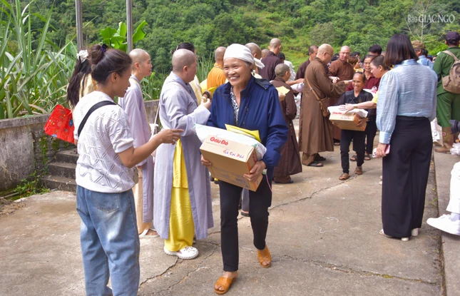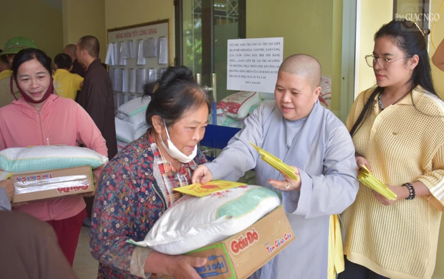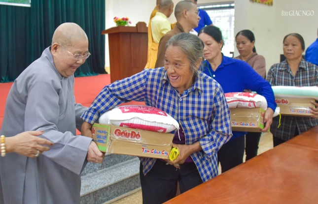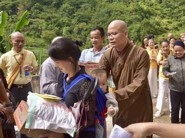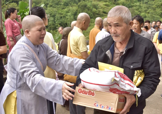"Chương trình sẽ trao tặng 7.000 phần quà đến người dân các tỉnh Cao Bằng, Thái Nguyên, Thanh Hóa, Nghệ An, Hà Tĩnh và Quảng Trị bị ảnh hưởng bởi cơn bão số 10 và 11 vừa qua, giúp họ khắc phục thiệt hại và sớm ổn định lại cuộc sống.", Thượng tọa Thích Tuệ Hải nói thêm sau khi gửi lời chúc sức khỏe đến người dân.