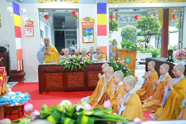 Ni trưởng Thích nữ Từ Nhẫn, Trưởng Phân ban Ni giới TP.HCM cũng sách tấn đến chư hành giả tại tịnh xá Ngọc Phương |