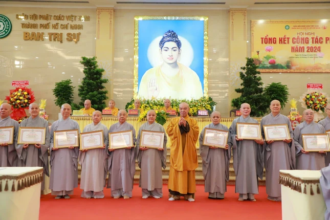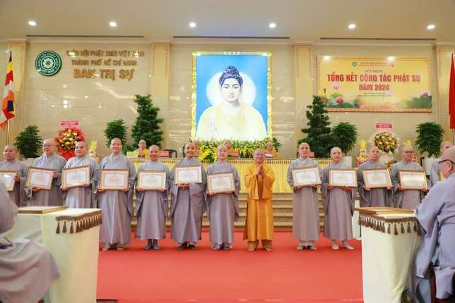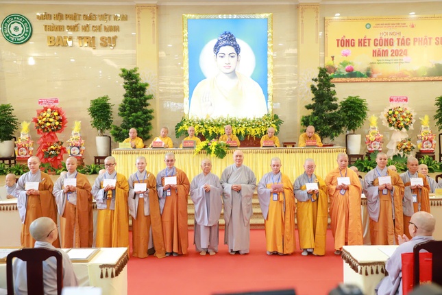 Ghi nhận sự đóng góp của chư Ni TP.HCM, Ban Thường trực Ban Trị sự TP.HCM đã trao tặng Bằng tuyên dương công đức đến 1 tập thể, Bằng công đức đến 21 tập thể và 37 cá nhân.