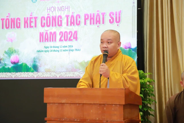 Phát biểu khai mạc hội nghị, Ni trưởng Thích nữ Từ Nhẫn, Trưởng Phân ban Ni giới TP.HCM, Trưởng ban Tổ chức nhận định năm 2024 là một năm đối mặt với nhiều thách thức, từ những biến động xã hội đến những khó khăn về kinh tế, nhưng Ni giới TP.HCM vẫn hoàn thành vai trò và trách nhiệm trong các công tác Phật sự quan trọng.