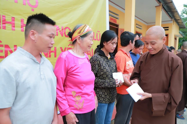 Ni trưởng Thích nữ Như Minh trao quà đến bà con vùng bão lũ |