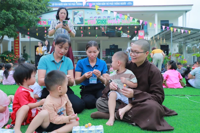 Đoàn cũng tặng 100 triệu đồng cho điểm Trường mầm non Minh Tiến và các phần quà gồm: sữa, bánh và áo len cho các em nhỏ |